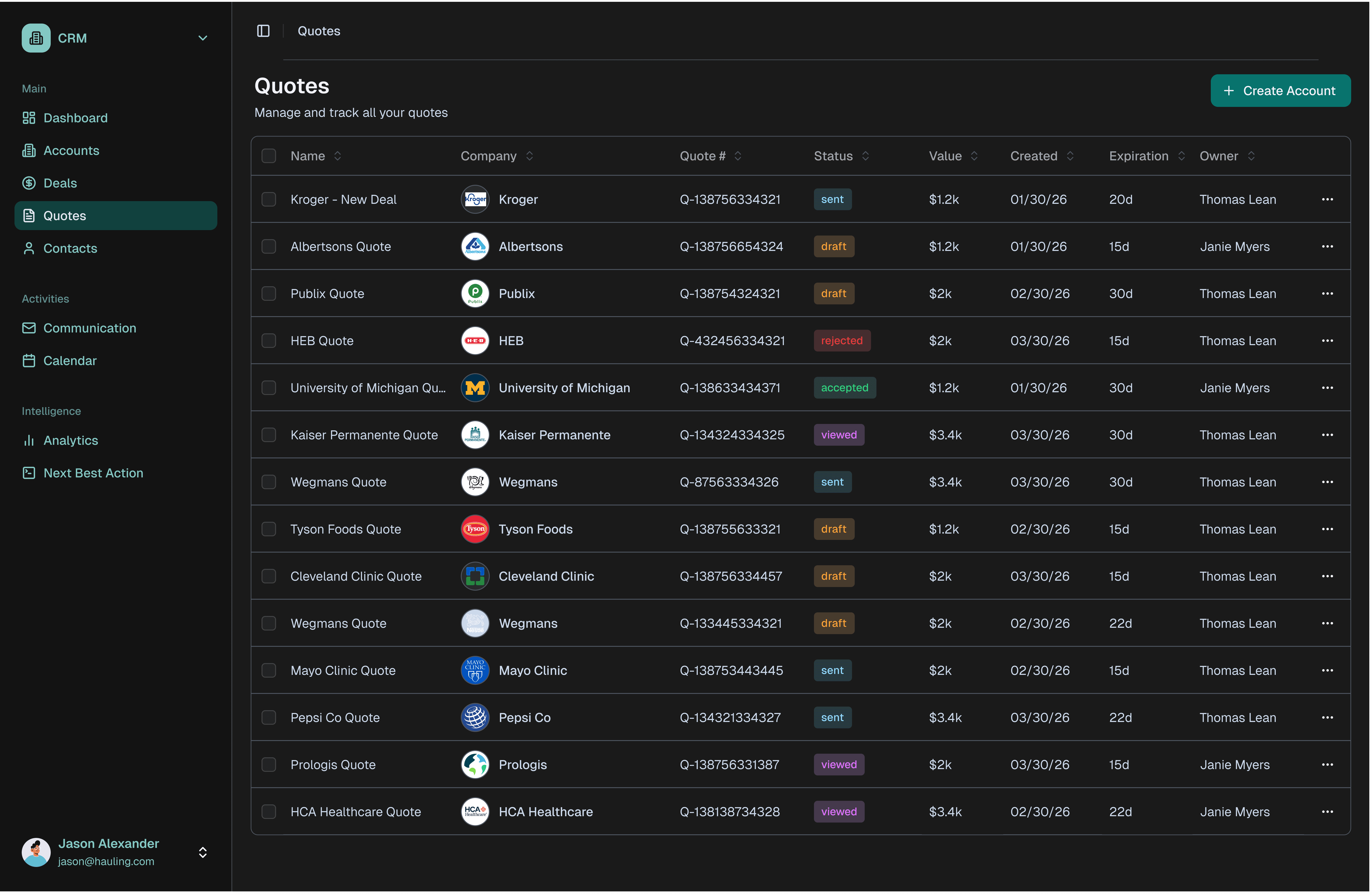 Build and send quotes.